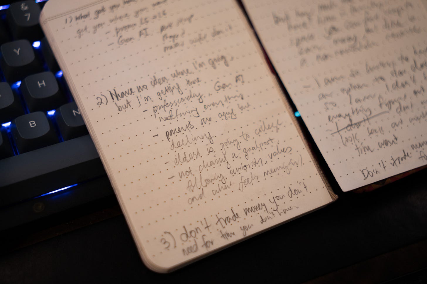 (A photo of my handwritten notes with the one-liner “don’t trade money you don’t need for time you don’t have”.)
